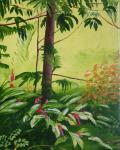 This is a jungle scene in the early morning on Ponape Island showing typical vegetation of Micronesia's high islands. It was painted in acrylic on 9 x 12 stretched canvas and is a companion piece to Ponape I. The print is available in a number of sizes and treatments.