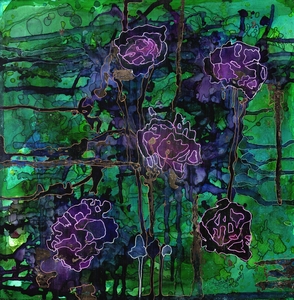Contemporary abstract painting. Mixed Media on wood cradle.