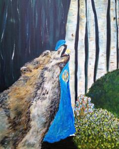 North Woods was painted May 22, 2014, in Eagle River, Wisconsin, and inspired by a lone wolf howling on my Journey to the Heartland that month. It was a call to speak and I knew it. For me this painting feels honoring of that howling wolf and all he / she represents yet steadfast and transformative. There is the feeling for me of the dis-mantling (literally throwing off the mantle) of fear and the reclamation of all that matters most. I knew what must be faced and revealed. The treasure was a terror. The terror was a treasure. What is your essential story of life? What is alive in you?