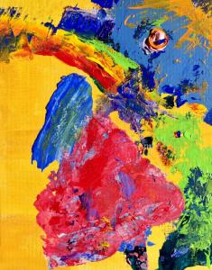 This piece was created with my non-dominant hand. From a single stalk of the true vine, a girl in a red dress teeters, on the verge of losing faith. From the skies a menacing wind blows forth, muddying her rainbow top hat, which represents her choice for walking toward joy. But butterflies are born from her belief and, though she cannot see it at the moment, her shadow is growing green and ever into life. This acrylic painting is from the Spirited Life collection. Life is composed of many circles of creation and recreation. Spirited Life paintings are variations on the theme of life and dreams of a new world. Connect to your essential story of life as you explore paintings in the Spirited Life Collection. What is your essential story of life? What is alive in you?