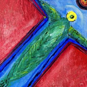 This painting was inspired by my month of housesitting on a farm, where I cared for two donkeys, who had gentle souls but, I believe, vivid imaginations.