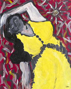 Something about the stars that night she wore the yellow dress... The music swept her into reverie and she did not mind the heat of the August night. On the island of Hispaniola she awaited his arrival. It had been too long since the sailor had come their way, and while they met in dreams it was not the same. She sometimes did not know herself without him, as if her face was comprised of shadow and the memory of the moment with him by the sea, as if her limbs no longer belonged to her body, as if her heart were outside of her chest. This Spirited Life painting is by Virginia artist Dawn Richerson.