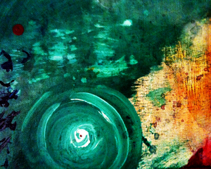 Watery spirits rise to a crimson blood moon at left as a central figure dances, sweeping the energy upward. The green field is amorphous, suggesting something is in process, yet unfinished. Something is being formed, reformed, transformed even. The painting has an unfinished quality to it, further emphasizing the unfoldment at work in this single life and in humanity as a whole. A Spirited Life painting by Virginia artist Dawn Richerson.