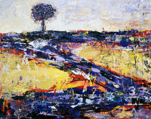 The year I turned 33 my life turned in upon itself. I wandered through a world of blinding light and moved unseeing toward the tree of life my heart remembered. I seemed hopelessly lost and stumbled through the dark. I came to rest beneath the lonely tree and only then could I see that mine had been a road of many riches, paved for those adorned by God in robes of purple leaves and a crown of radiance. Refined by life, and all the back and forth, we are revealed as radiant and resplendent, meant to partake of the glory and goodness of God. You, too, are walking a royal road and being refined along the way. The Royal Road is a Spirited Life painting from the Dreams for a New World collection by Virginia artist Dawn Richerson.