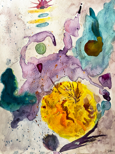 Their colorful collaboration is a dance through time, an improvisation that is articulation of creative potential. Cosmic Creators is a watercolor from the Time and Transformation Watercolor collection.
