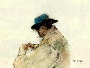 A good fly fisherman knows what the fish are eating and when. That means knowing your bugs and adjusting your lures accordingly. This is a painting of an expert I know tying on a new fly.
