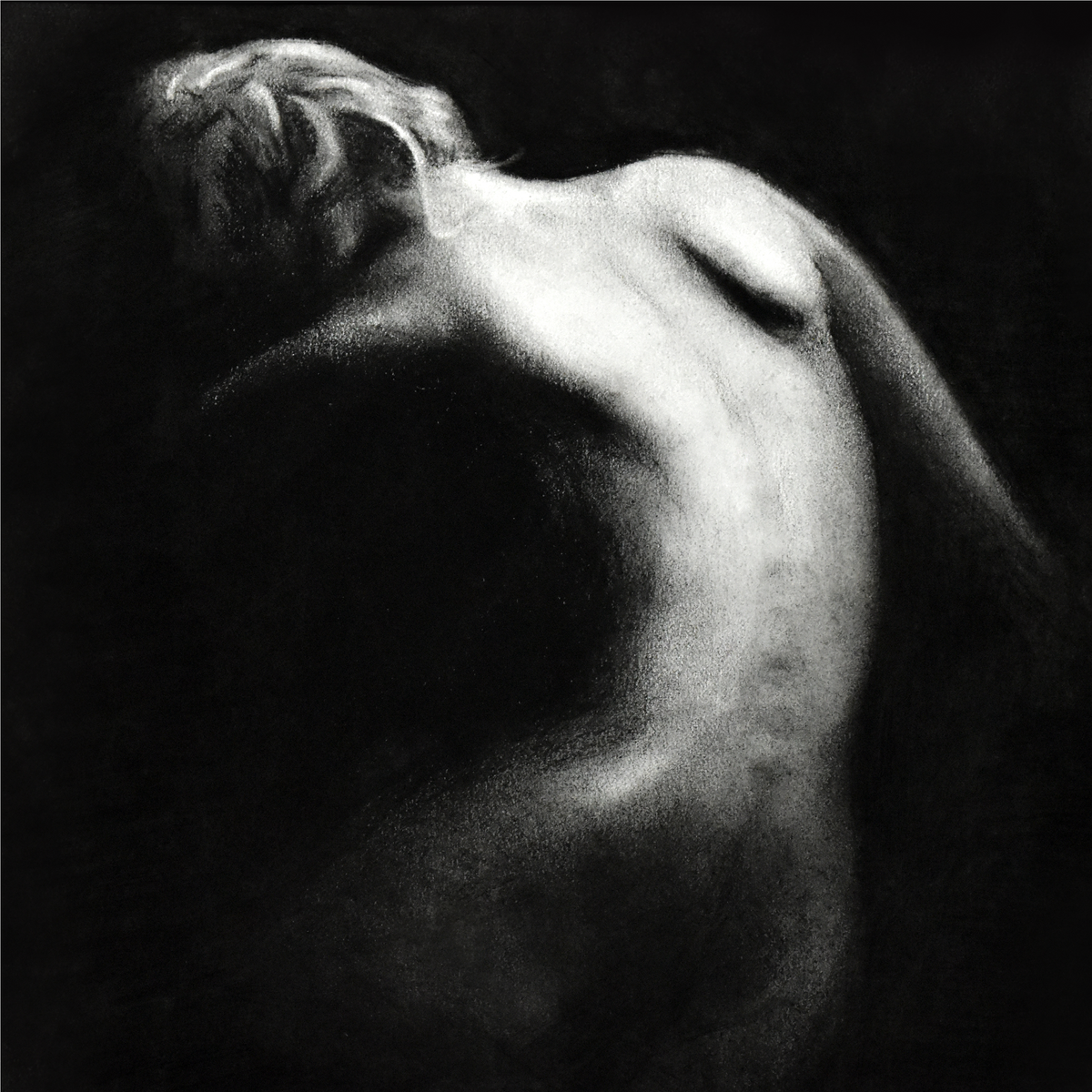 A fine art print of a the soft curve of a woman's back drawn in charcoal. (2021_1909)