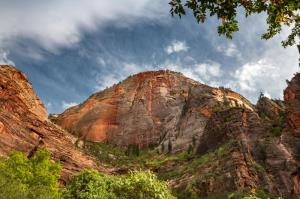 Late afternoon clouds and fading light create interesting colors and contrasts on Cable Mountain (1970 m) and along the Echo Canyon trail in Zion National Park, Utah.