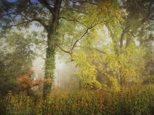 On a historic property near Annapolis, a huge paddock is overgrown and holds the fog in the early summer morning.