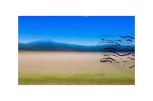 Painting base on long exposure photographs taken while traveling through Mt. Shasta, California. It is intended to be pairs with it's sister, "Mount Shasta, CA - Right" to create the entire piece. When hanging makes sure the black markings match up.