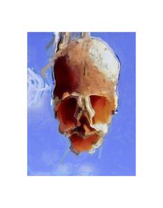 This is a painting base on a photograph of a plant called Antirrhinum or commonly referred to as Snapdragon. The seed capsules give the look of a skull.