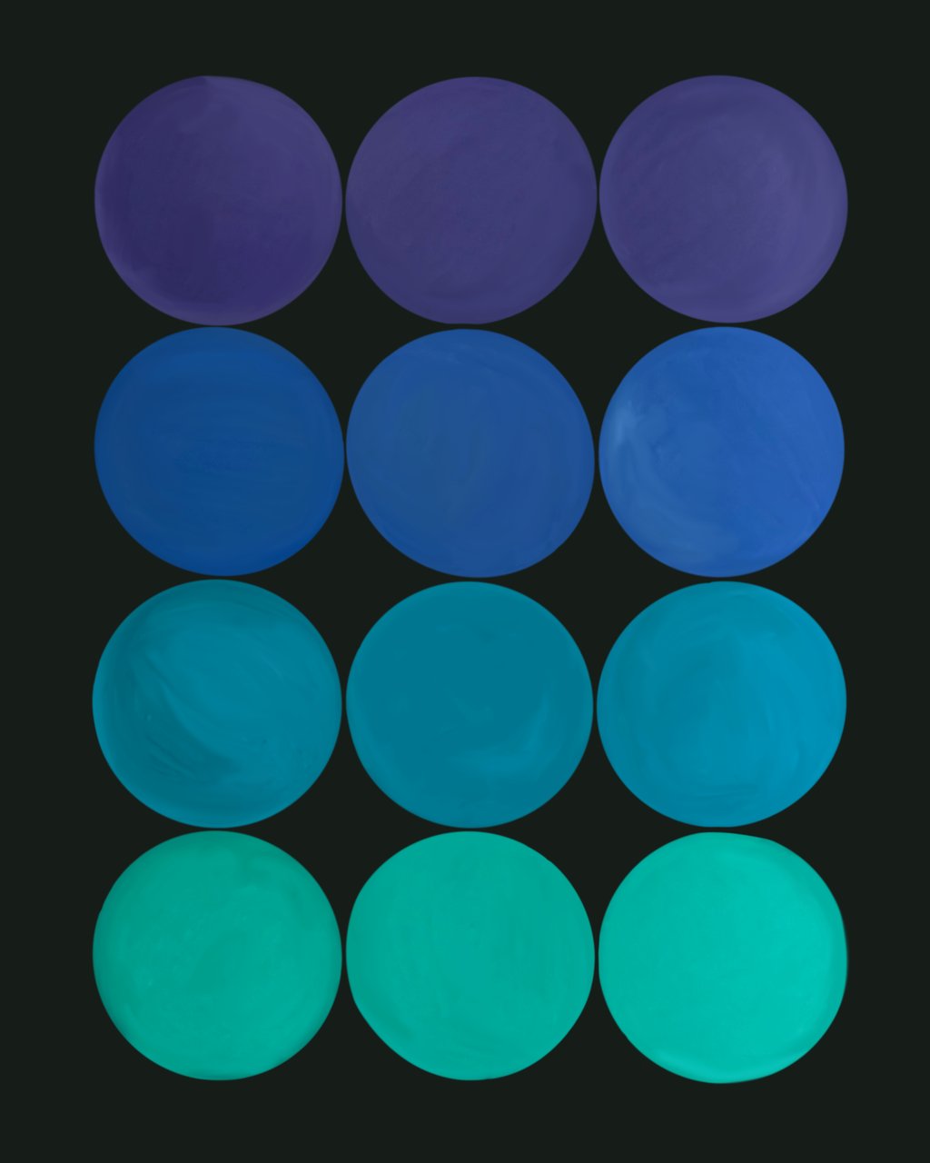 Stillness, held in color. Cool Spots features a cluster of soft-edged shapes, resting without motion. The colors shift gently in an ombré gradient—cool tones, calm atmosphere. It’s not about action, it’s about presence.