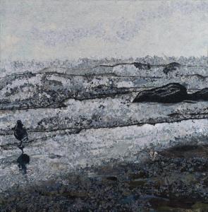 Original- 2019 My Fish is created out of shreds of fabric and Acrylic highlights of black and white. I saw this seagull at Cannon Beach, Oregon eating a fish that washed ashore. When I tried to get a better photo of him, I’m he walked away with his fish the sun having just set. The piece reminds my of a story book and I ended up keeping the original.