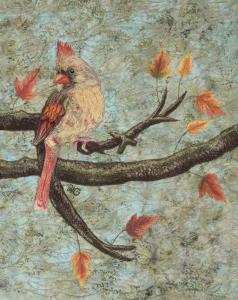 Original - Glad Tidings Was created in 2019 from thread and fabric. This is reminiscent of the time between Thanksgiving and Christmas.