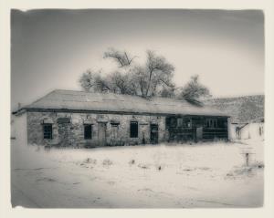 An Antiqued Black and White Photograph of the Brigg at Fort Apache