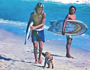 Two Surfers Attempt to Convince a Puppy It's Okay to Go Surfing