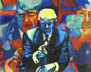"They aren't after me, they are after you. I'm just standing in their way." Pop art style creation with with mafia-style thug wall behind the "father" of American freedom.