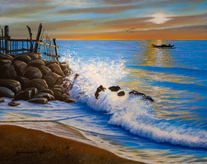 Inspired by watching this fisherman's coming back home from fishing to be with his family again towards at the end of the day.