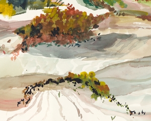 Detail abstract of 30"x22" watercolor of Padre Island dunes.