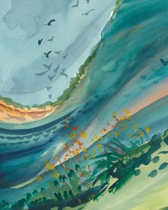Detail abstract of 15"x11" watercolor of birds in flight.