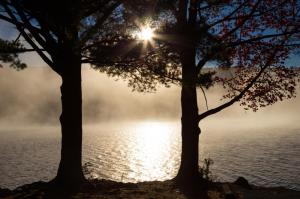As The Sun Rises, So Does The Fog - This scene was taken on a beautiful morning sunrise in Torrington, Connecticut in Autumn, (October). The fog was lifting ever so quickly, off of the shimmering water.