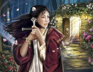 Part of my martyr series- a true story of a young Indonesian girl who was martyred for her faith in Jesus Christ. She holds the key to unlock the door of intimacy with the Lord Jesus Christ. The door itself represents Him being opened to all that would come. She holds a sword called 'Justice and Mercy' and wears a red garment representing her martyrdom.