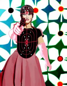 Guns don’t kill people...people do. That’s my inspiration. Everything about this image defies reason. Women in evening wear usually don’t kill people with guns. In fact, they don’t usually kill people. Flowers signify growth. Out of 182 mass shooters in the United States since 1966, four of them were women. The intractability of gun reform combined with the rise in deadly mass shootings in the past two decades is a tragedy. There are literally more guns than people in this country. The idea that guns don’t kill people is ludicrous. Therefore I created a work of art that matches the moment. The question still remains, could the woman in the artwork kill you without a gun? Yes, she could. However, you would have a chance to live.