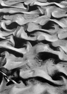 Mixed media drawing of shadows on the sand, from a dry wash out in the desert near phoenix.
