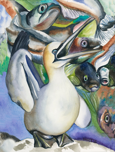 Is anyone else mildly disturbed by the ubiquitous use of the term #foodporn ? I think this Gannet is too. I was jealous of a fellow first grader because our art teacher thought she was brilliant. He did have to take her paintings away before she would wear a hole in the paper. Perhaps someone should have taken my brush away earlier. #northerngannet #capelin #feastorfamine