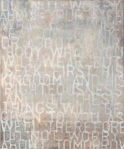 Words from Matthew chapter 6, slightly obscured, overlapping, faded. It's not immediately easy to see or do.