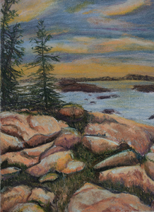 This soft pastel was inspired by a dear's friend love afair with Bar Harbor, Maine - I wasn't able to join her that day, so she shared a photo that I re-created here. The warm glow of a day dawning as it warms the unique island specaled oasis of the bay. Original 8x10 Pastel