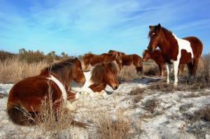 A herd of wild horses relaxed under the warmth of the sun on the sandy dunes of their island home. The sky was a beautiful blue, the air was crisp, and the wind was still. I felt privileged to be in their presence. The Assateague Island, wild horses will forever have a place in my heart.