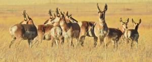 A herd of wild antelope, pronghorn watch in all directions for danger. Each eager to warn the other when faced with a risky situation.