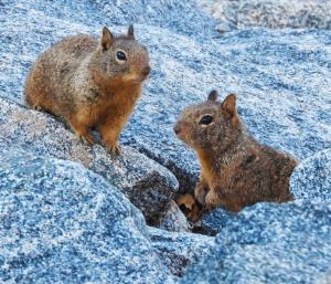 These silly squirrels were having a great time teasing the fisherman in the area popping up and down in the rocks.