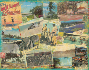 Follow Hwy. 90, the Coastline connection: The lighthouse and the shell road. Broadwater Beach marina and Gulf Park College girls. Early waterfronts and a pre-beach seawall. 1920s oyster shucking and 1950s deep-sea fishing