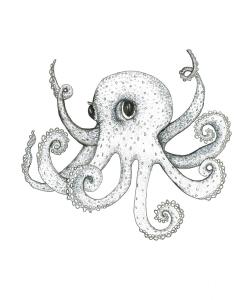 Octopus is one of my favorite creatures because they have three hearts. This little one was born out of ink on paper.