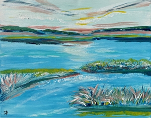 Early morning light over Texas coastal "Flats" showing pastel colors in acrylics.